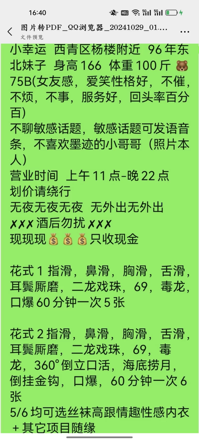 信息分类:楼凤兼职 地区:天津市-天津市 信息来源:实地考察 年龄:28 颜值身材:8 服务项目:花式,剩下自己聊 价格:500 环境设备:8 详细地址:本段信息已隐藏,请先登陆。点击登陆 , 或者 点击注册 联系方式(微信):本段信息已隐藏,请先登陆。点击登陆 , 或者 点击注册 详细介绍: 妹子人超级温容,有女友感觉,介绍里本人照片。做活不催人,做完了还让你歇一会再走,性格好不冷场,重点一定要让她穿上黑丝,腿特别值,腿控,足控的兄弟不要错过。可以试试倒立口,表情勾人,真想直接推进去,可以说找了这么多花式妹子在这个价位,性价比很高了,其他的自己去解锁。 楼凤兼职