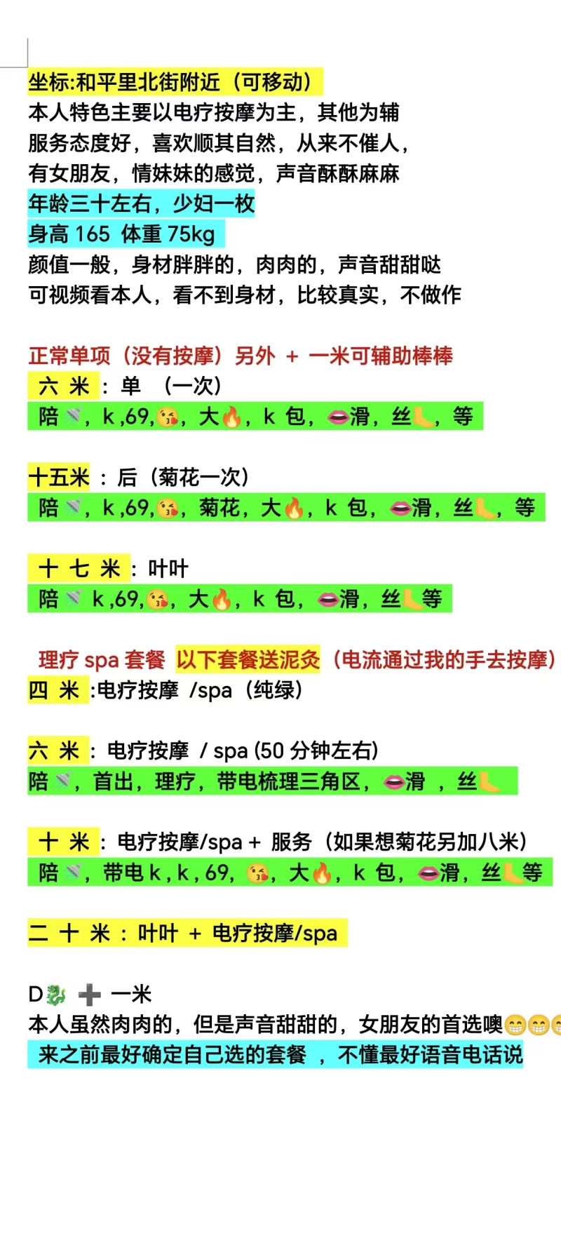 项目很全面,四十多种项目; 1.生态养生类:热浪冰川,原生态 spa ,梦幻水疗,皇帝养生,花式泡泡浴,泡沫风情,浴火重生等一系列男士肾部保养服务。 2.特色主题类:高雅古典,性感狂野,复古魅惑,双人角色,宫廷系列,办公室 OL 等 3.私密套餐类:幻想丁字裤,制服诱惑,女王调教,秘密深入,三套性趣,乳胸推汾,玉女缠身,魅力雄臀,龙凤泡浴,后花园,曼游阿拉伯之夜等 每个项目都有小剧情,有开头、高潮、结尾、余温。等专属场景!单人单间情趣套房,女孩定期检查,安全无套路,没有隐形消费。我们不仅注重质量,更加注重服务安全,诚信经营安全第一。消费跟得上的大哥加,欢迎各位狼友品尝,口嗨勿扰。