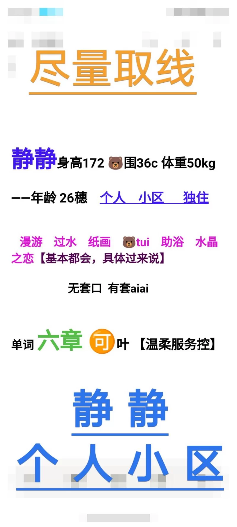 地点呢就在成寿寺,当初我去的太早,发消息以后说10点半开始,我说都已经到了,那边说那就上楼吧,进屋换鞋直接带进了卧室,里面有一个浑身绑着红绳的女孩,其他人都还没起来,就选这个了,然后去洗碗,可惜没有陪浴,洗完以后进卧室,正好来了电话,就接电话,女的直接就给口上了,感觉挺爽的,之后呢就随便玩,口爆了一次,肛一次,正常的一次,对sm不太了解,就是体验一下,总体来说还是好的,以后建议大家还是中午以后去,可以挑选自己喜欢的姑娘。
